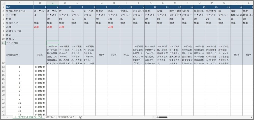 本記事では、Salesforceのユーザオブジェクトの登録に利用する一括登録用のテンプレートを提供しております。 毎回、新規のSalesforce導入では、ユー