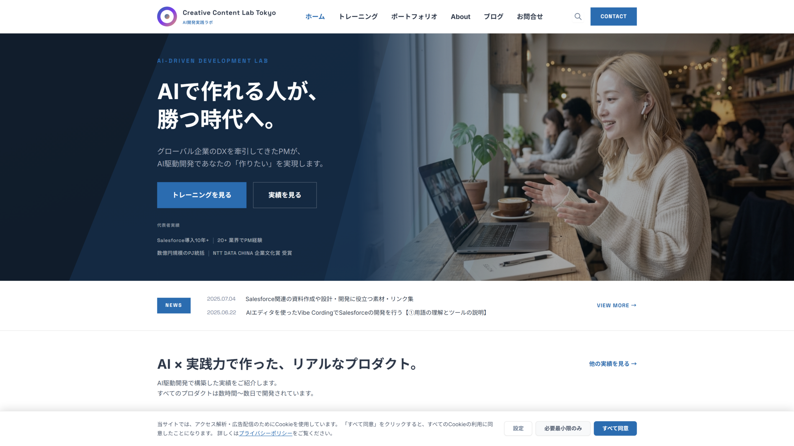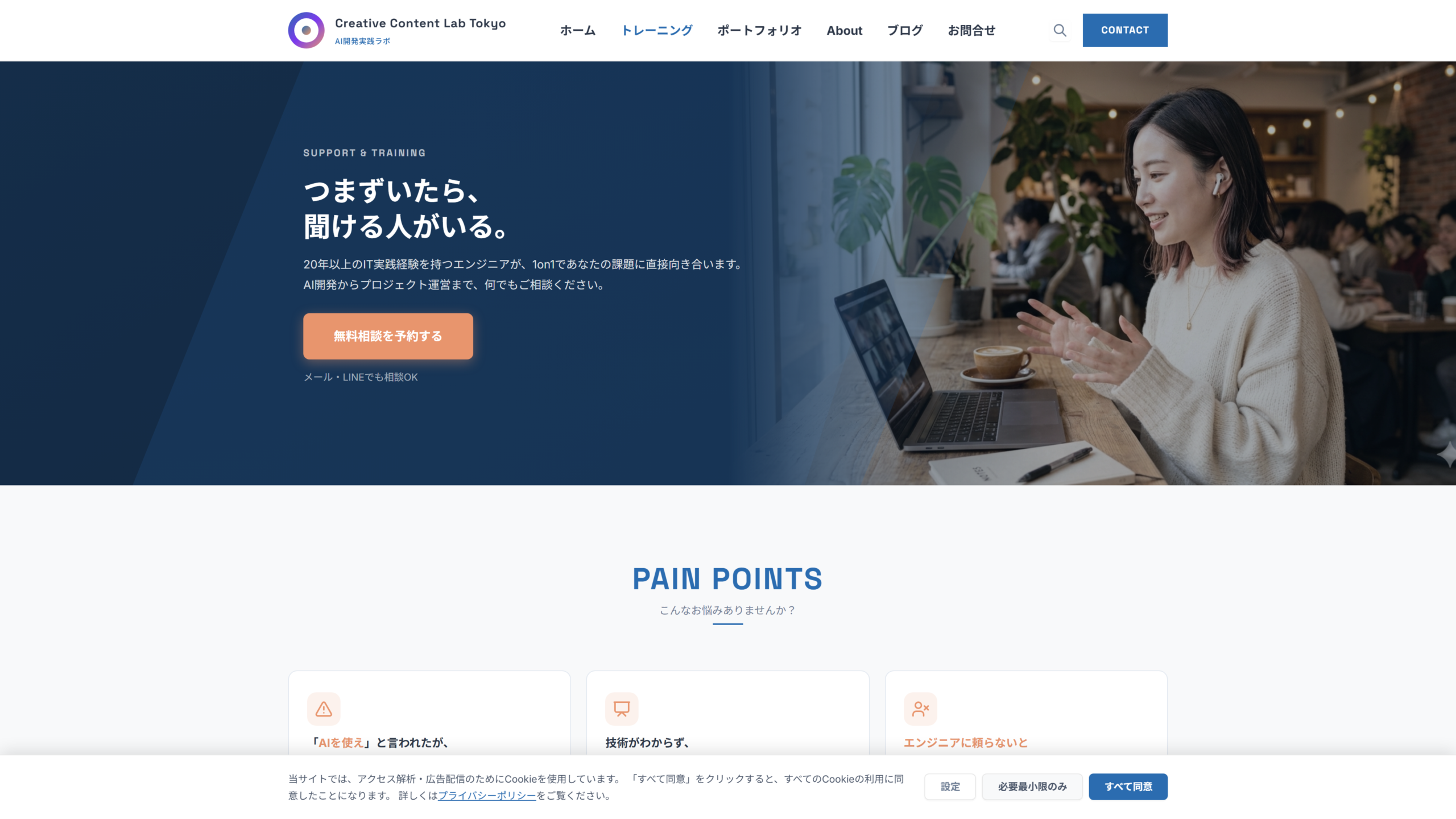 - サービスサイトとしての機能不足 — ブログとしては機能していたが、トレーニングやポートフォリオなど事業に必要なページが作れない