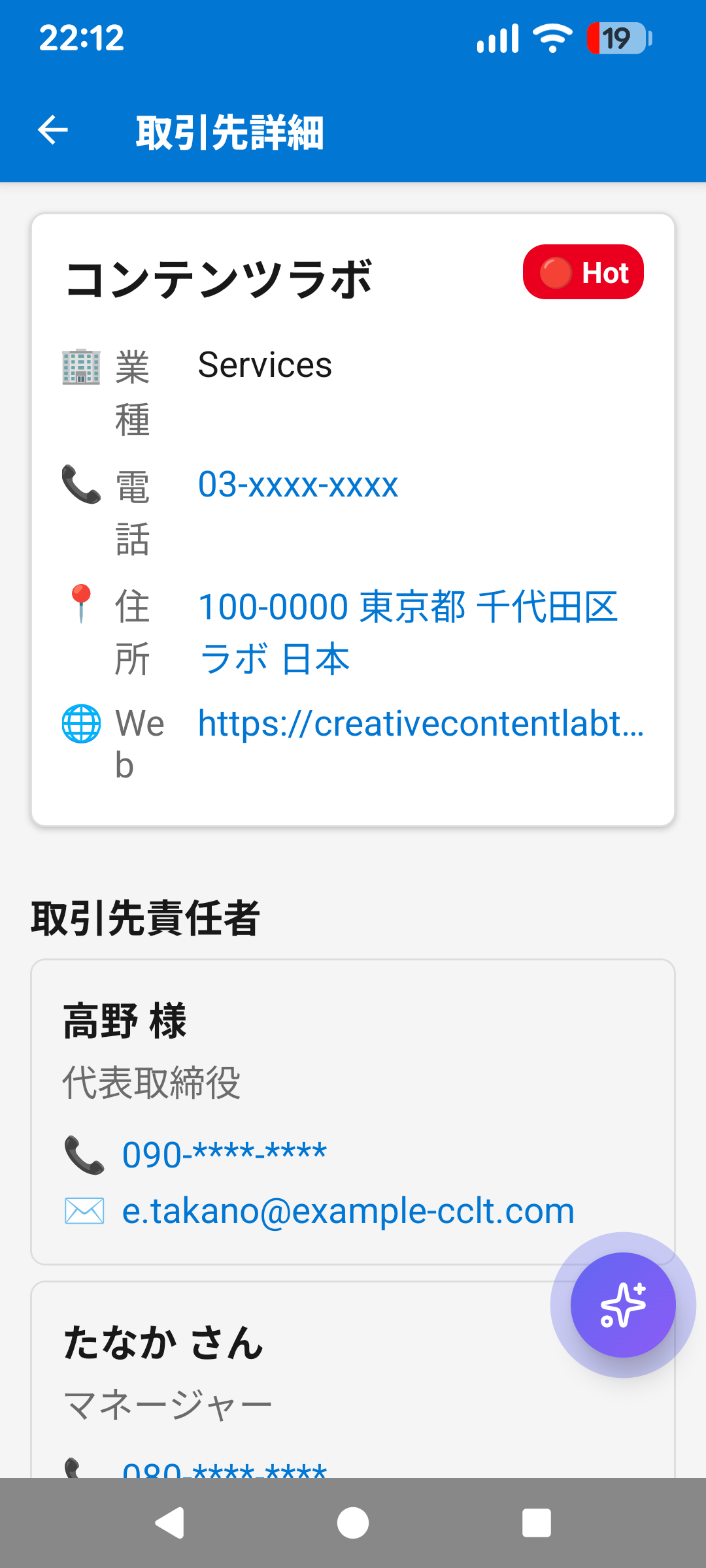 外出先の営業担当者がSalesforceのデータにモバイルからアクセスし、取引先管理・商談確認・AI支援・名刺登録をワンストップで行えるネイティブアプリです。Salesforce REST APIとの連携により、リアルタイムのデータ同期を実現しています。