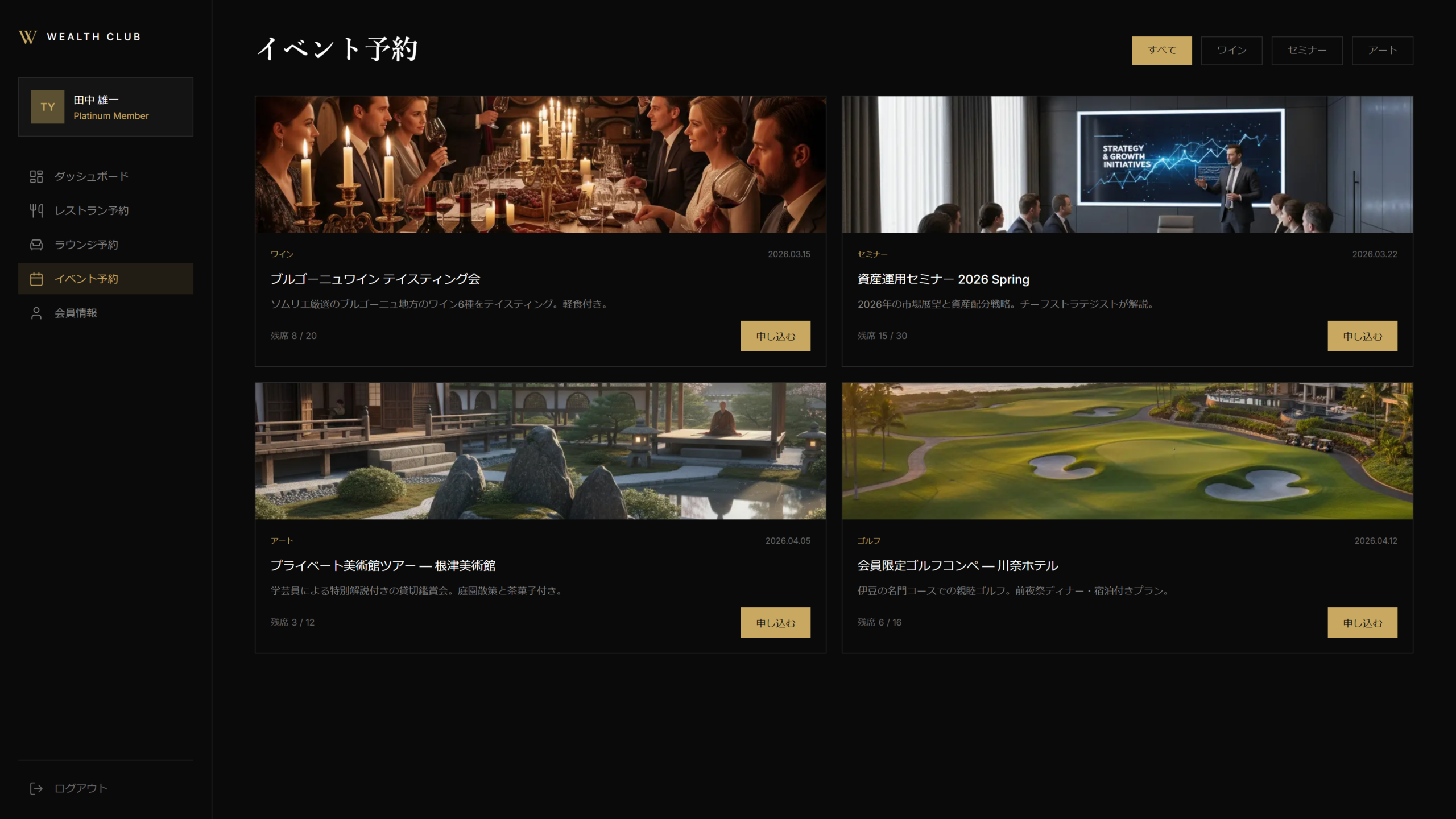会員限定イベントの一覧・詳細・参加申込。カレンダー連携でスケジュール管理。