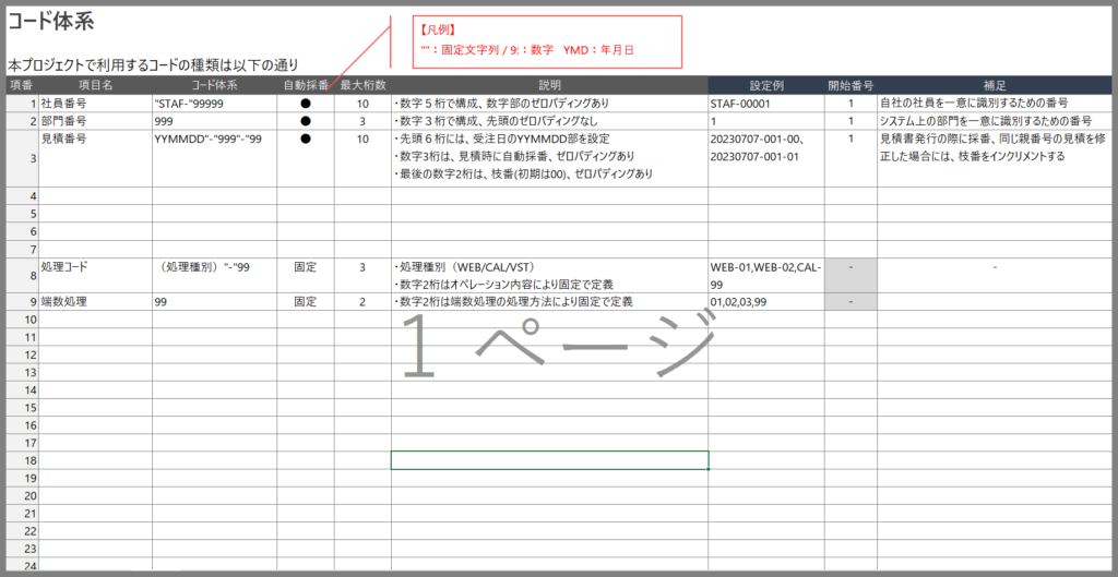 コード体系とコード値の定義が完了したら最後にコード利用状況一覧を作成します