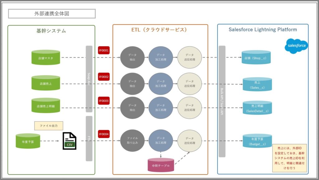 外部インタフェースのインタフェース連携全体図やインタフェース一覧のエクセルの設計書テンプレートを用意いたしました。 外部インタフェースの処理設計書が必要な方は以